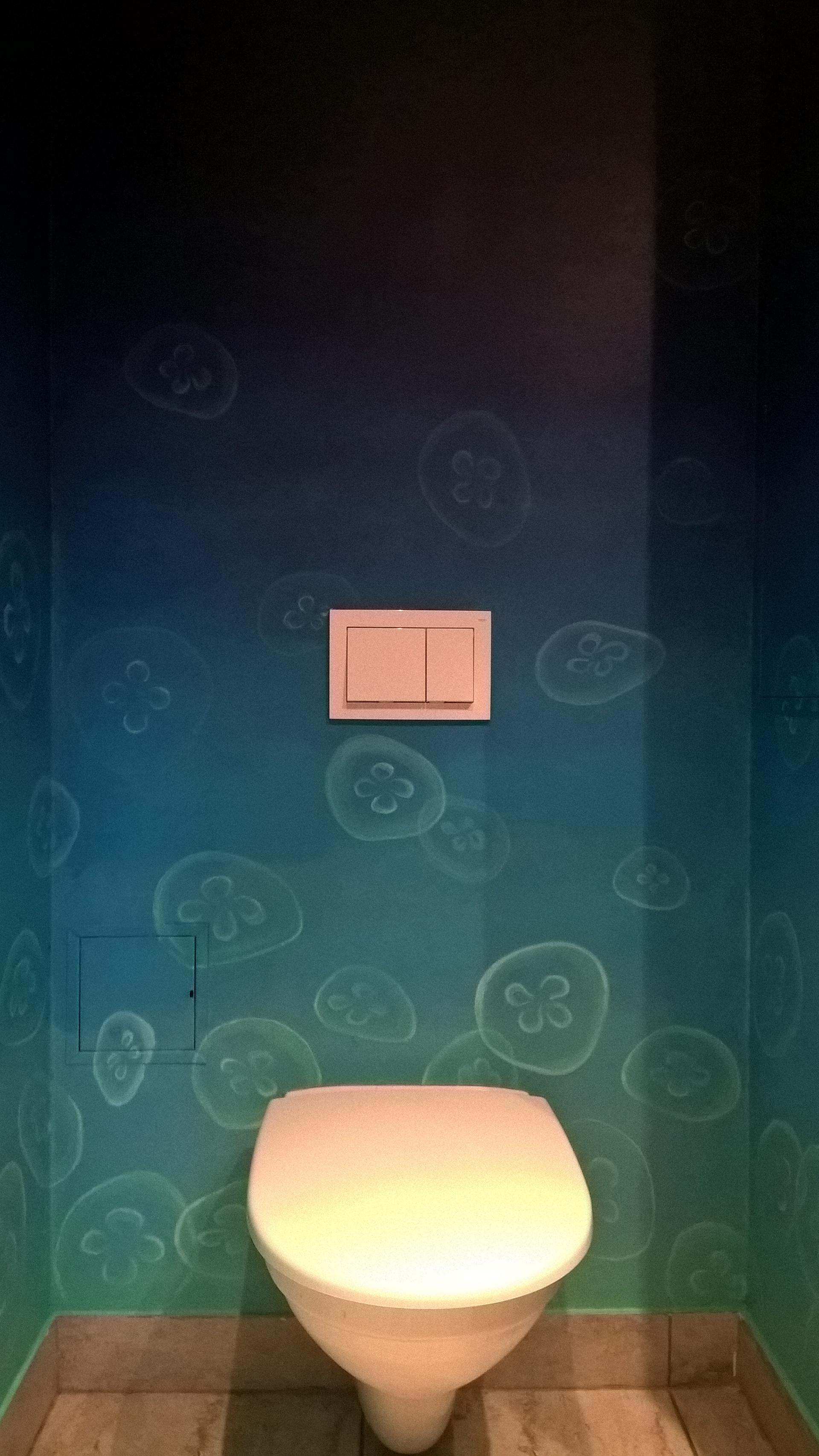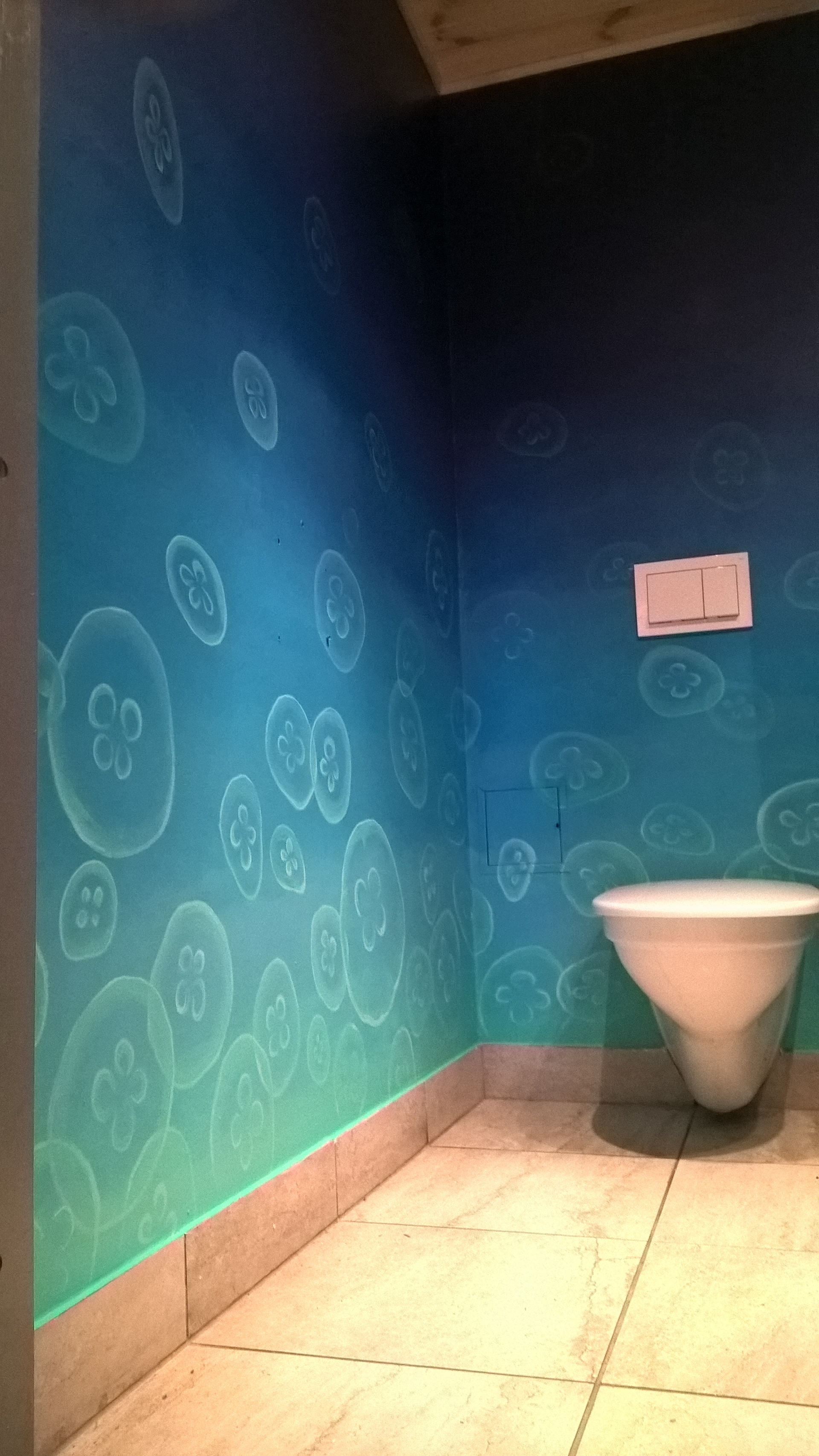 interior mural "Jellyfish." at "Säde" bar wc in Tartu city. Within Stencibility art festival.