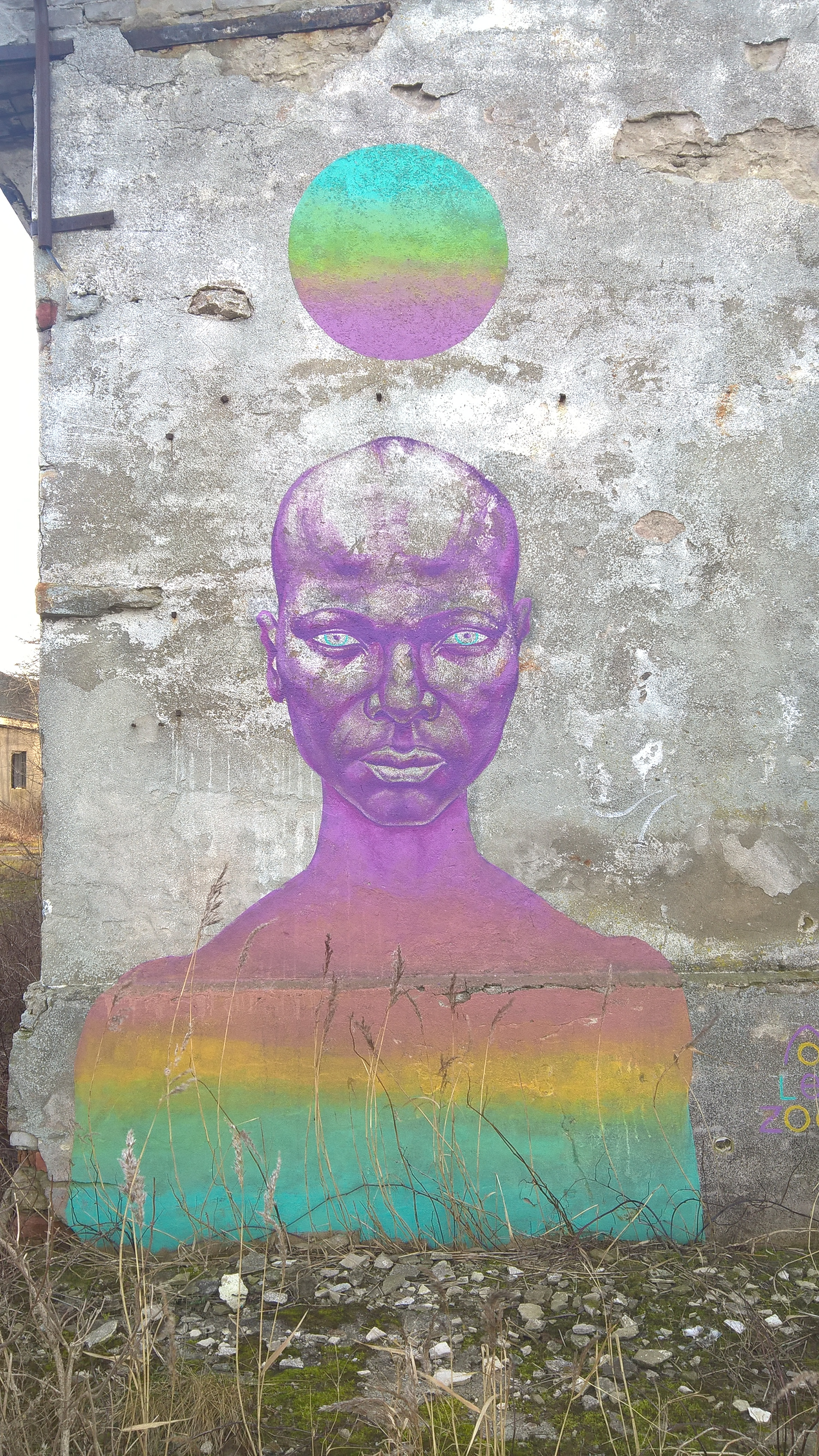 Portrait of a girl from the African tribe, with сlear eyes & pure mind. Mural in Haapsalu city.
