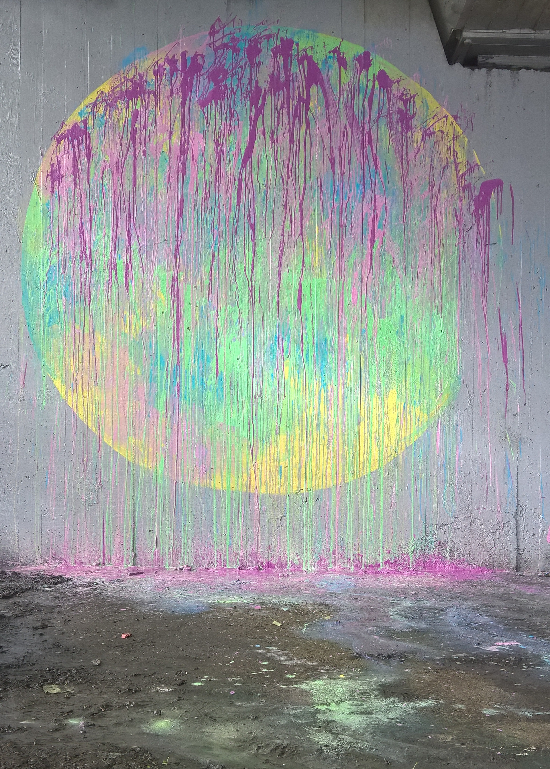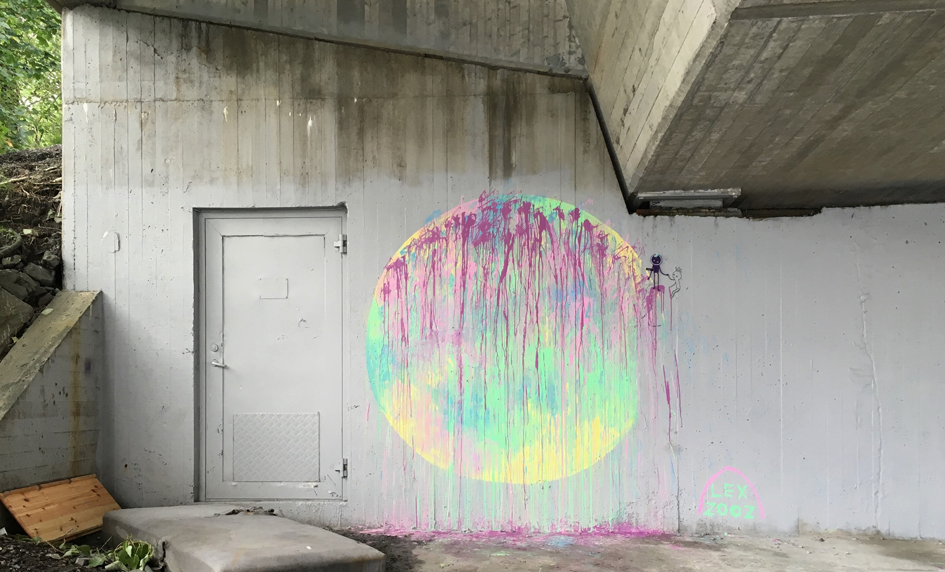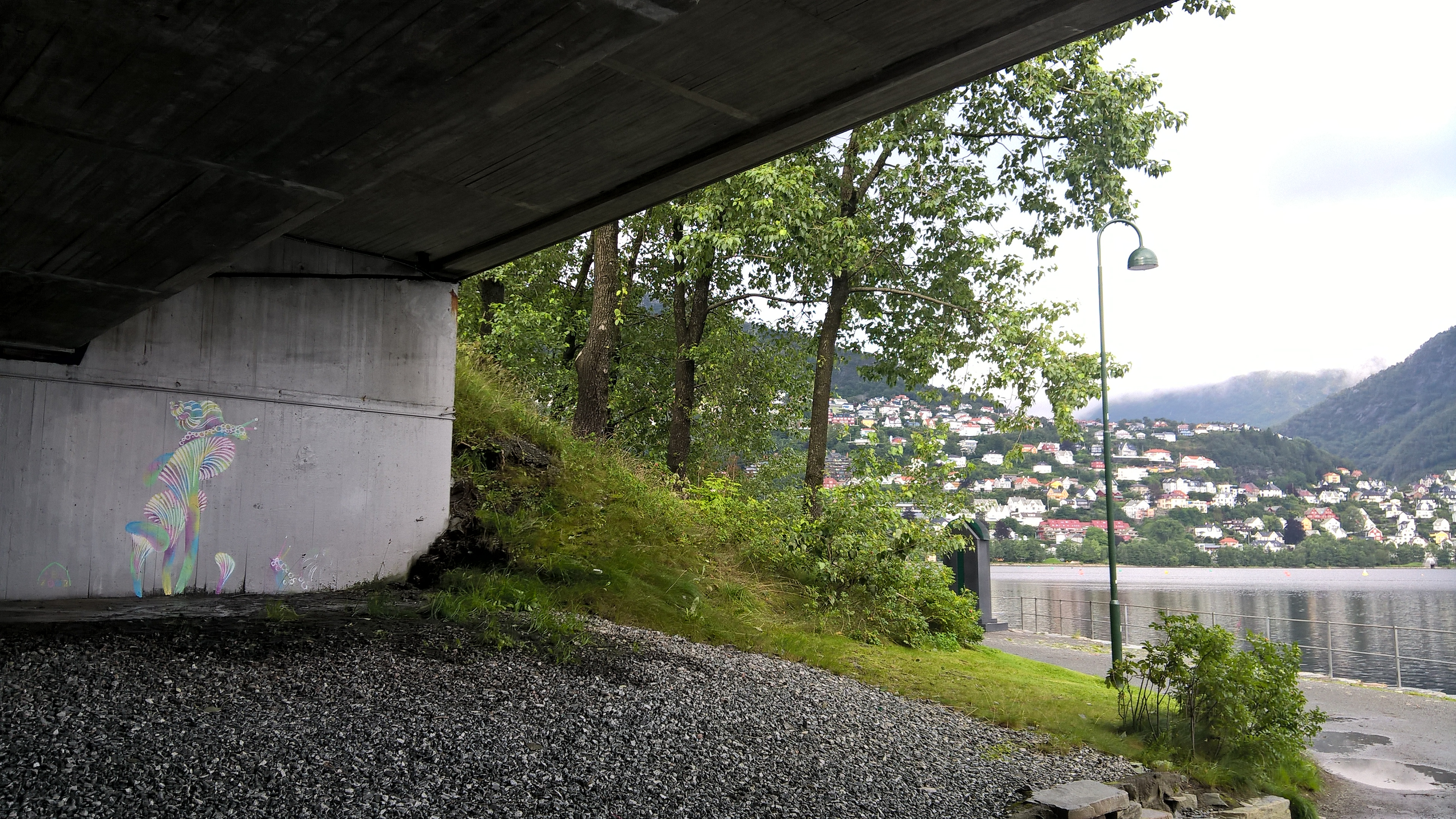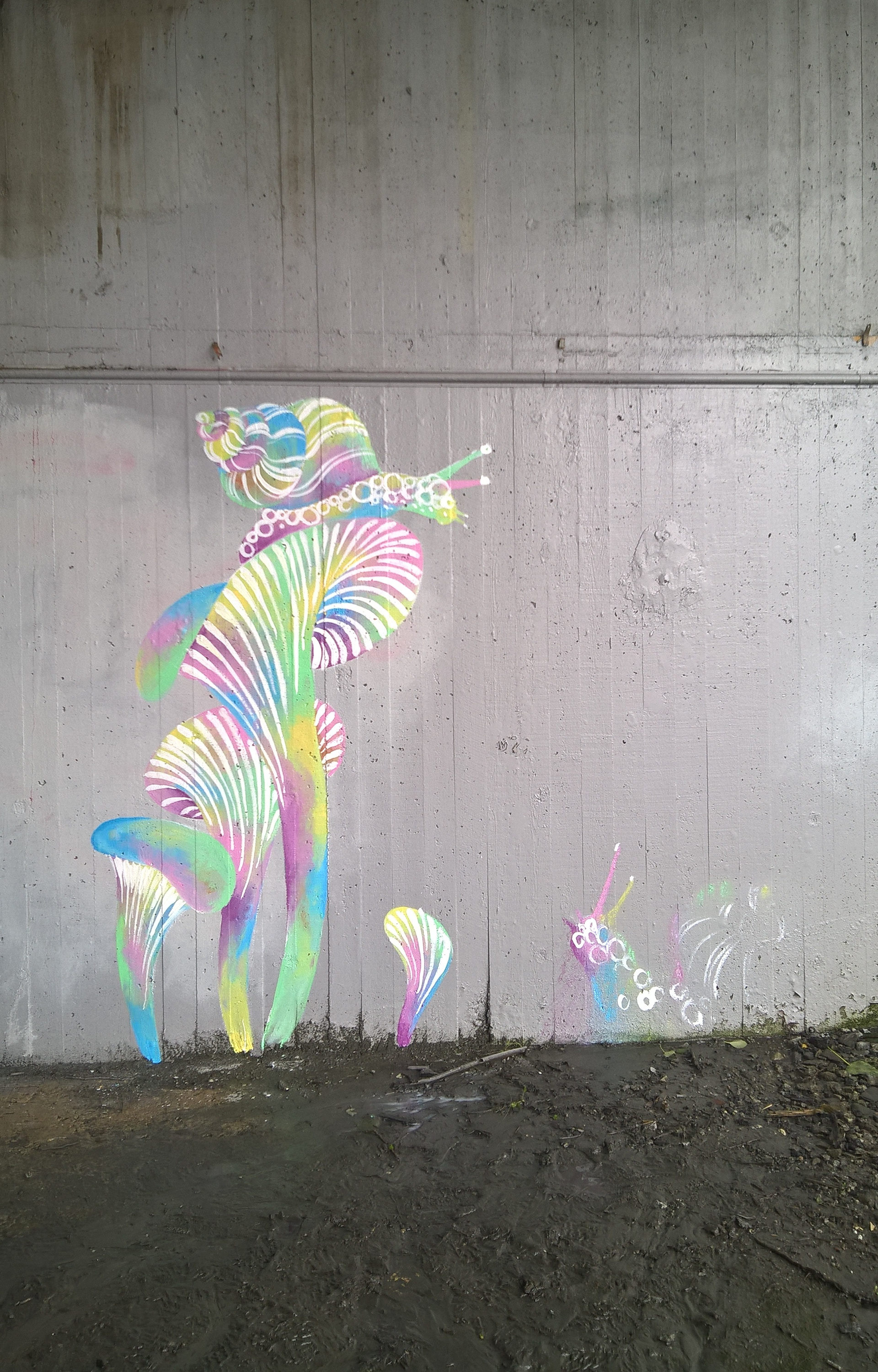Urban murals "Bergenś rain" with amistreetart & "toxic snails" in Bergen city under Fjøsangerveien bridge.